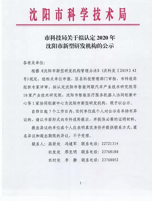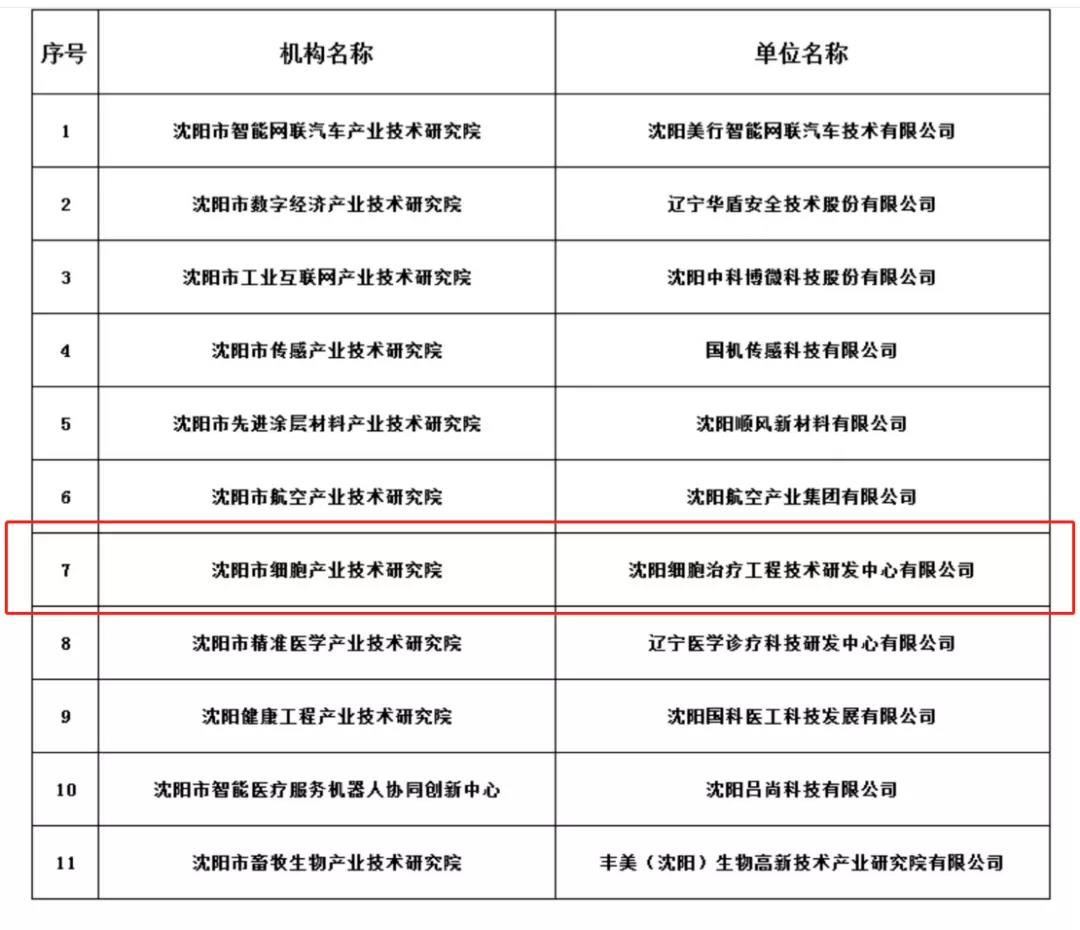 12月10日,沈陽市科技局就2020年沈陽市新型研發(fā)機(jī)構(gòu)評定結(jié)果公示,共11家機(jī)構(gòu)入選,依托沈陽細(xì)胞中心建立的“沈陽市細(xì)胞產(chǎn)業(yè)技術(shù)研究院”名列其中。