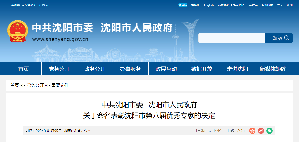 文章來源:沈陽市人民政府官網