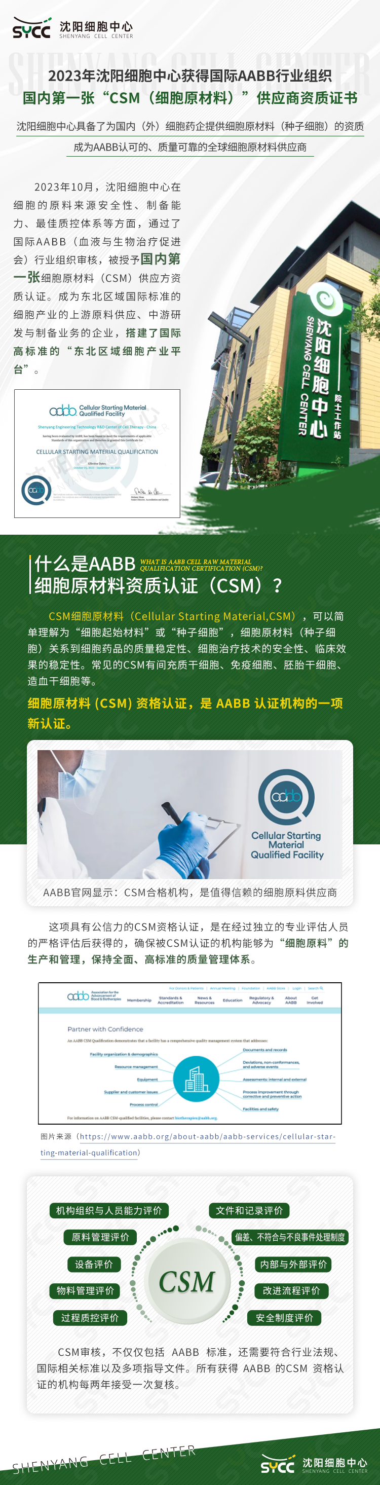 【公司新聞】2023年沈陽細胞中心獲得國際AABB行業組織國內第一張“CSM(細胞原材料)”供應商資質證書