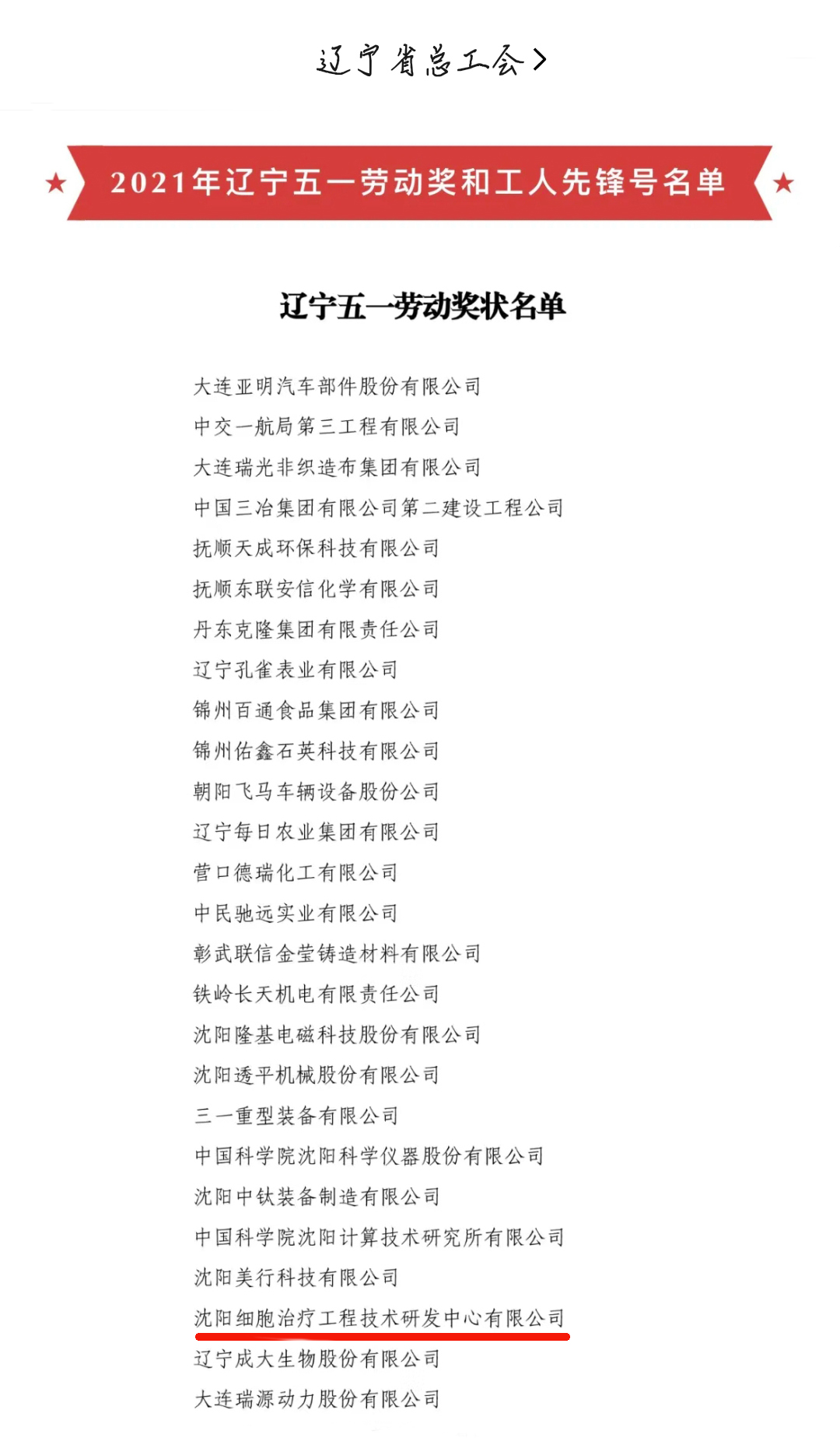 這并不是公司首次獲得此類榮譽。早在2019年,于艷秋教授作為新興醫療技術和細胞產業帶頭人,被沈陽市總工會授予“五一勞動獎章”榮譽稱號。