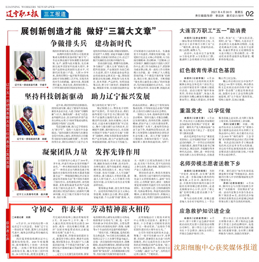 4月27日,經遼寧省總工會研究、遼寧省委批準,授予沈陽細胞中心等80家單位遼寧五一勞動獎狀。獲獎單位中僅沈陽細胞中心一家細胞行業從業機構,日前公司董事長于艷秋教授受邀參加表彰大會并代表公司接受媒體采訪。