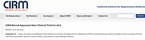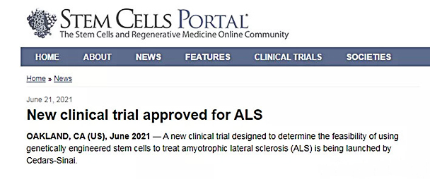 近日,美國西達賽奈醫療中心的一項新的臨床試驗獲得加利福尼亞再生醫學研究所(CIRM)撥款1199萬美元,旨在確定使用基因工程干細胞治療ALS(漸凍癥)的可行性。